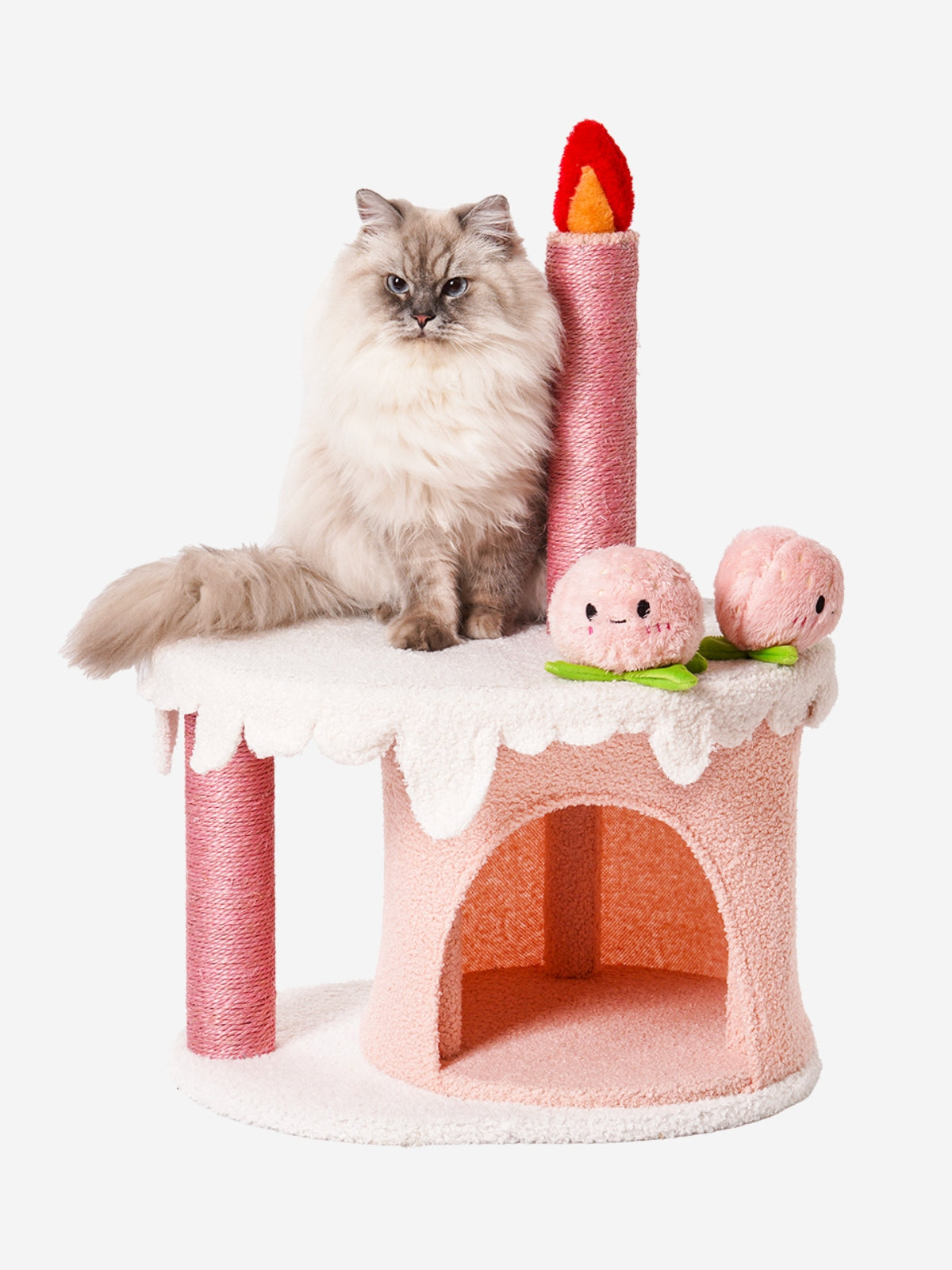 Strawberry Birthday Cake Cat Tree & Condo House with Squeak Toy