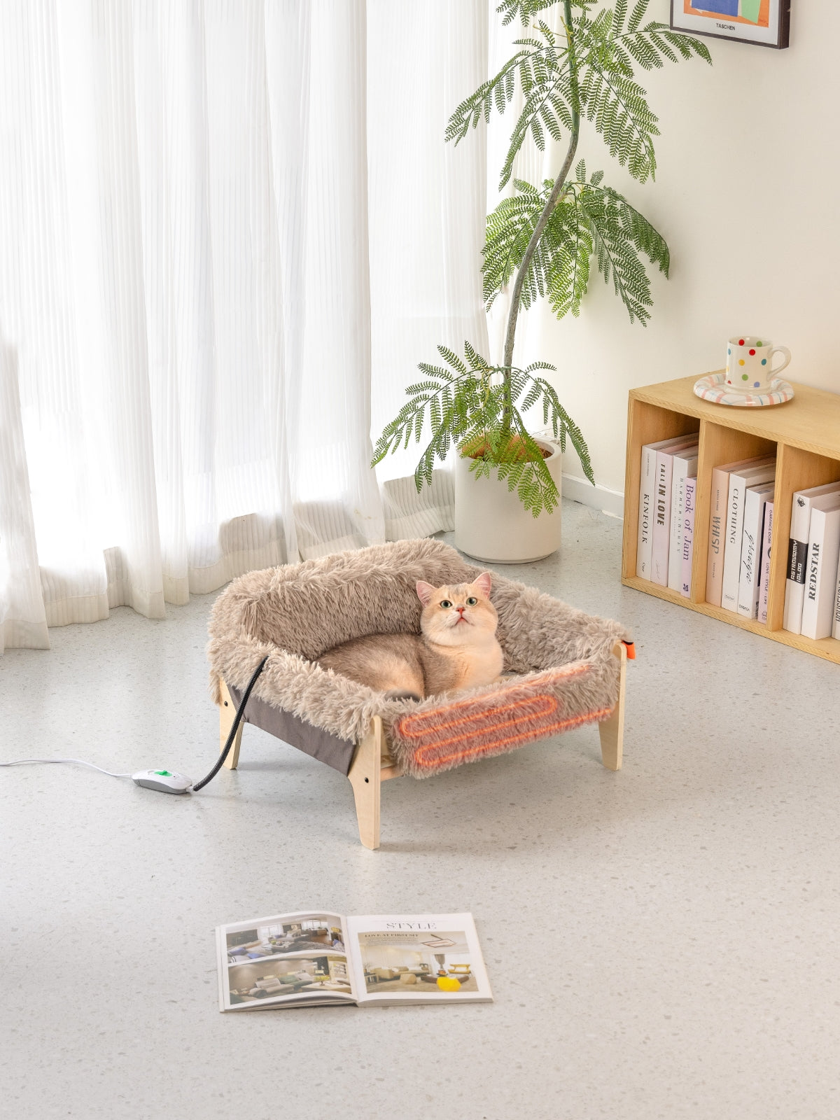 The MewooFun Heated Calming Cat & Dog Bed is designed to provide the perfect combination of warmth, comfort, and style for your pet. Ideal for cats and small dogs, this elevated bed with adjustable heating ensures a cozy resting spot while keeping your pet off cold and damp floors. With supportive side arms and a sturdy wooden frame, it’s crafted for ultimate comfort and durability.