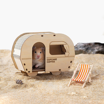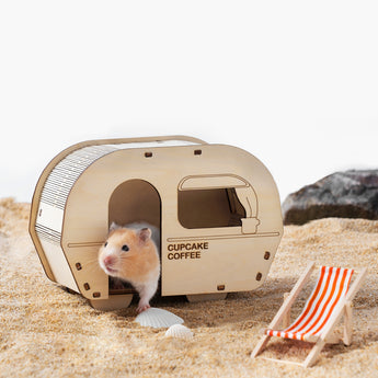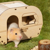 The MewooFun Wooden Coffee Cart Hamster Hideout adds a charming café-inspired touch to your pet’s habitat. Designed in the shape of a mini coffee cart, this wooden hideout provides a cozy and secure space for hamsters to rest and explore. It requires DIY assembly, making it a fun hands-on experience for pet owners. Crafted from high-quality wood, it ensures durability and safety for small pets.