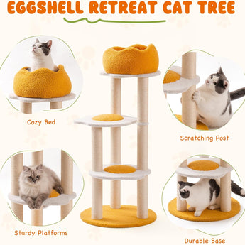 The MewooFun Fried Egg Cat Tree is a multi-level playground that combines fun, comfort, and style for your furry friend. Featuring sturdy sisal posts, cozy beds, and an adorable fried egg-inspired design, this cat tree offers endless playtime and relaxation. Its compact, space-saving structure fits seamlessly into any home and is perfect for cats of all ages, from playful kittens to senior loungers.